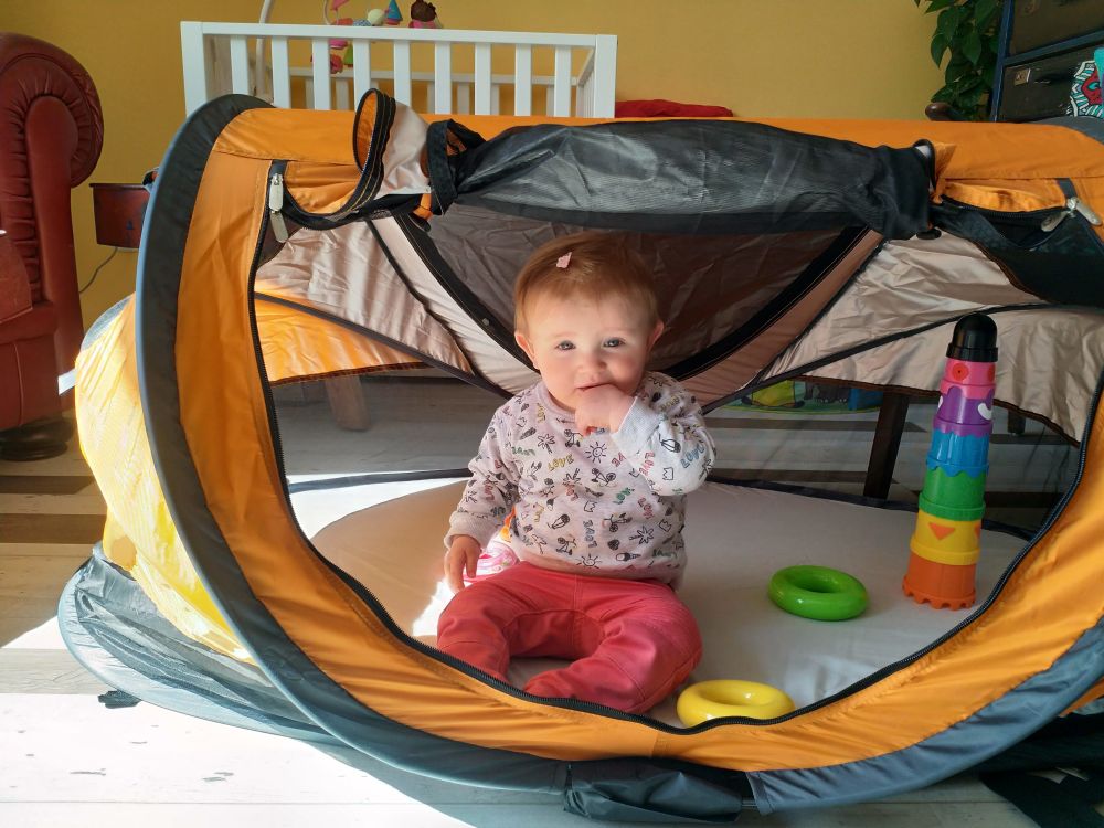 Vandaag is het peuterbedje van Deryan binnengekomen. Een mooi compact pakketje. Je doet de rits open haalt het bedje eruit en het ontvouwt zich zelf. Als hij staat kun je het matrasje er inmaken middel een rits. Nu wordt het uiteraard nog een uitdaging om Lianne te leren dat ze er ook in kan slapen. Het spelen is al gelukt. Dat worden wel een paar oefennachtjes thuis.