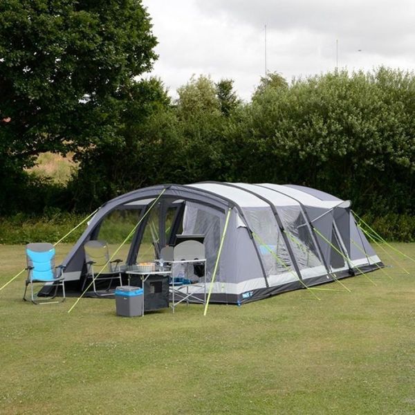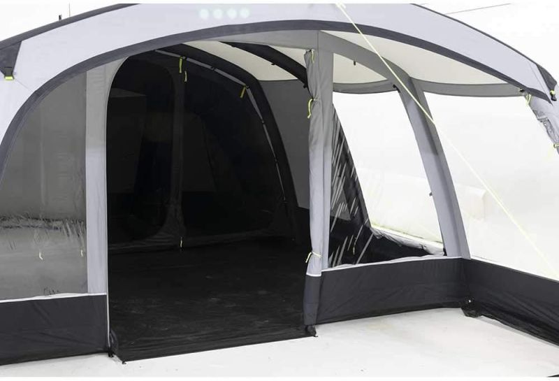 Deze ruime gezinstent is voorzien van een royale luifel die met de meegeleverde voorwand volledig afgesloten kan worden. Is het mooi weer? Dan kun je heerlijk onder de luifel zitten en bij slecht weer heb je extra binnenruimte. De Croyde 6 Air TC is voorzien van een vast kuipgrondzeil met neerklapbare drempels bij de deuren voor extra comfort. Beide deuren zijn bovendien ook voorzien van een hordeur zodat je de tent heerlijk kunt doorluchten zonder dat er ongedierte naar binnen kan. De grote ramen van de Croyde 6 Air TC zorgen voor veel lichtinval en een ruimtelijk gevoel en wanneer je behoefte hebt aan meer privacy dan kun je deze eenvoudig van binnenuit afschermen met de oprolbare afdekflappen.