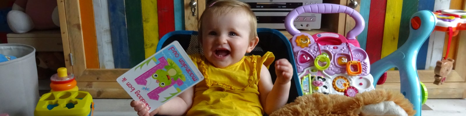 Je 11de maand begint op de camping. Hier zitten we nog een aantal daagjes in de safaritent. Je bent zodra het droog is niet van het veld af te slaan. Je vindt het superleuk om met je nichtjes te spelen, maar ook de andere kinderen op het veld vind je reuze interessant. Zij jou ook en elke dag ben je dus ook omringd door kinderen. Wij genieten ervan! Omdat we een abonnement hebben op Nienoord zijn we daar ook regelmatig te vinden. Lekker door de kinderboerderij en daarna veel spelen in het gras en zand.