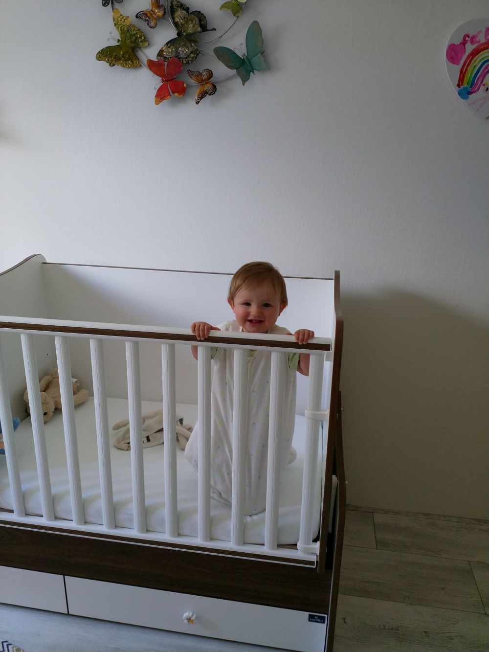 Monkey Town is altijd leuk en je vermaakt je er prima. We doen veel leuke dingen met Marco, Claudia Fabiënne en Philou. Springen op de trampoline en het luchtkussen. Je vindt het allemaal erg leuk en schatert het uit. Je probeert steeds vaker zonder handen te staan. Het lukt je heel erg goed en soms sta je enkele seconden zonder steun. Thuis vind je het ravotten op de bank geweldig. Gaan staan en je dan weer laten vallen is een leuk spelletje. Luisteren doe je nog niet zo goed. De planten in de kamer zijn niet langer veilig voor jou. Je kan nu ook in je handjes klappen en doet dit als je blij bent. Echt superleuk om te zien!