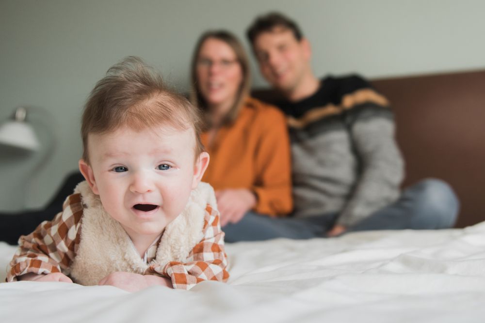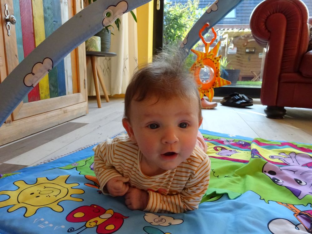 Mama haar verlof zit erop. Je gaat voor een ochtend naar SKSG Liekelei om te oefenen. Het gaat goed! Je speelt, slaapt en drinkt zelfs je flesje leeg. Vanaf december ga je af en toe naar de opvang. Beide opa’s en oma’s passen ook op. Het is allemaal wel even wennen. Mama is nu ook weer aan het werk en het ritme is anders. Wij moeten er alle drie even weer een weg in vinden. Jij bent de eerste keren onrustig val alle indrukken en ervaringen. Je gaat steeds meer ontdekken en leeft je helemaal uit met de speeltjes van de babygym. Je nek wordt ook steeds sterker. In de stoel probeer je steeds met je hoofd naar voren te komen. Je wilt graag alles zien. In deze maand is ook de “Newborn” fotoshoot van Rianne Wiegers Fotografie. Die heeft mama tijdens haar babyshower gekregen. Je krijgt ook de griepprik.