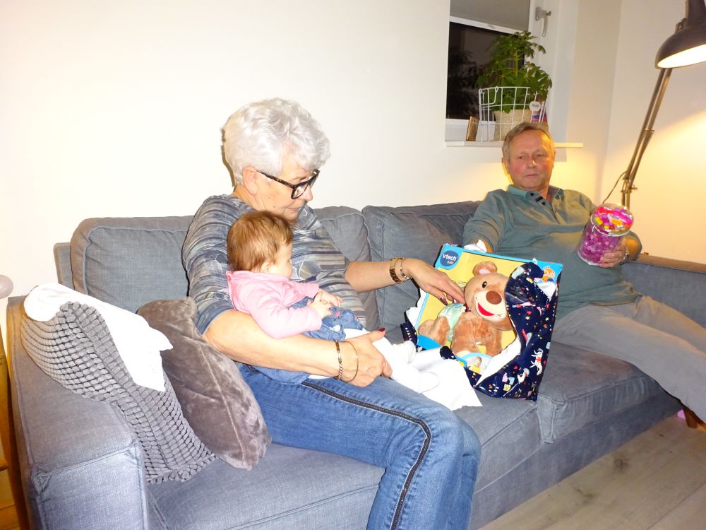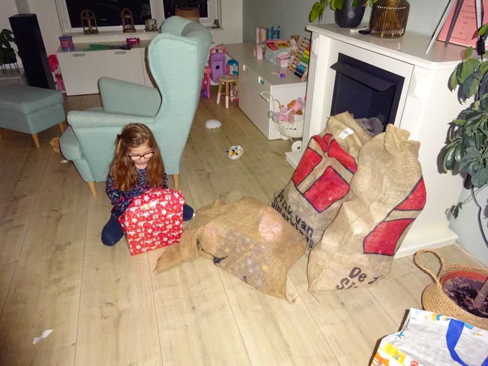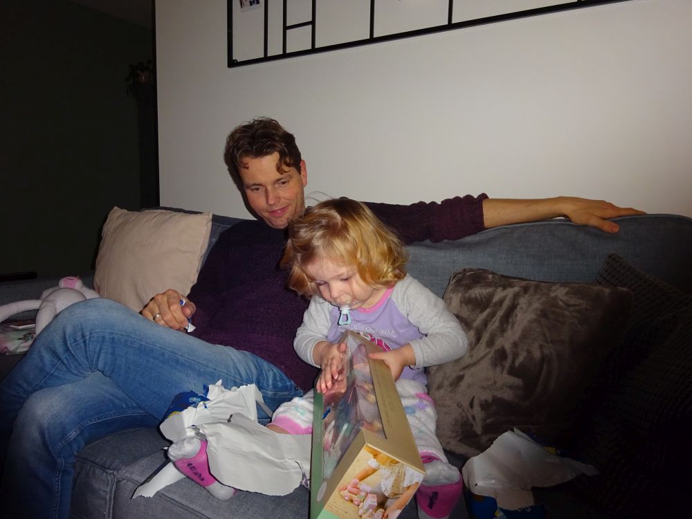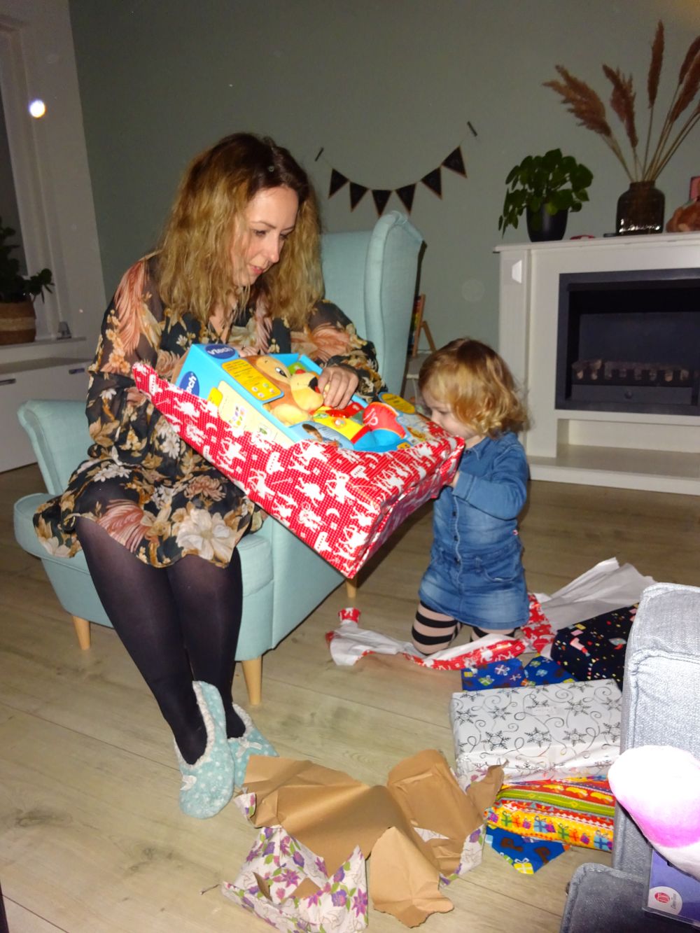 In deze maand komt Sinterklaas langs. Je krijgt van je tante Claudia een hele mooie pietenmuts met je naam erop. Je beide nichtjes hebben er ook een. Bij de intocht van Sinterklaas zit je voor de tv samen met papa. Op pakjesavond 5 december komt Piet ook langs met zakken vol met cadeaus. Je krijgt hele leuke cadeaus alleen besef je er zelf nog niks van. Je nichtjes daarentegen wel. Voordat we het weten zijn alle cadeaus al uitgepakt.