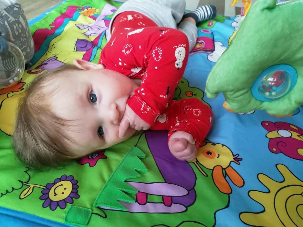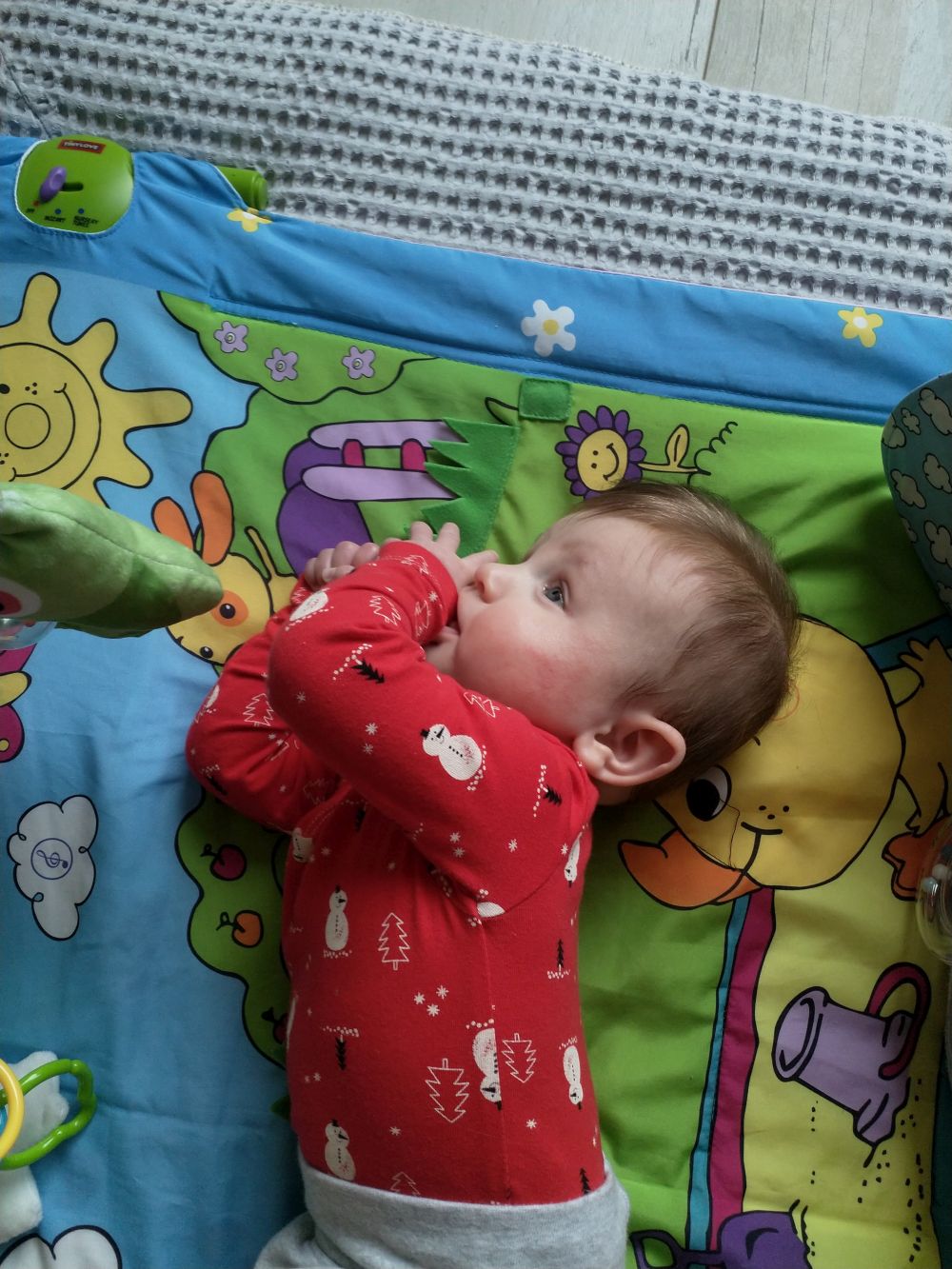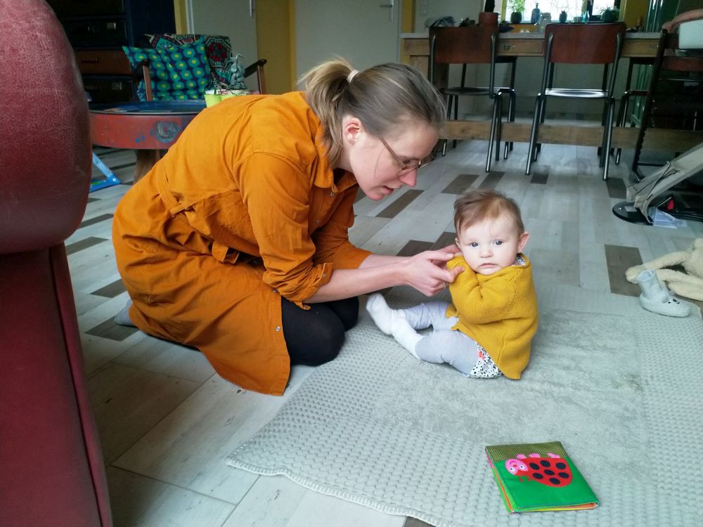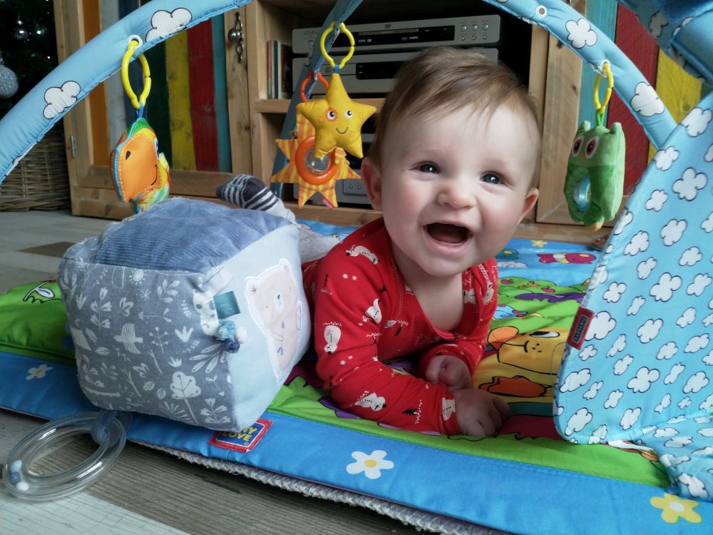 In november ben je voor het eerst verkouden. Je gaat van het ene naar het andere virus. Ondanks de vele snottebellen en hoestjes blijf je lachen en ben je tevreden. Je hebt een paar keer een verhoging. Je gaat nu twee dagdelen in de week naar het kinderdagverblijf en daar zijn meer kinderen en bacteriën. Eind januari heb je een verhoging van 39,3 Je bent heel warm. Na een nacht goed slapen is de koorts gelukkig weer weg.
