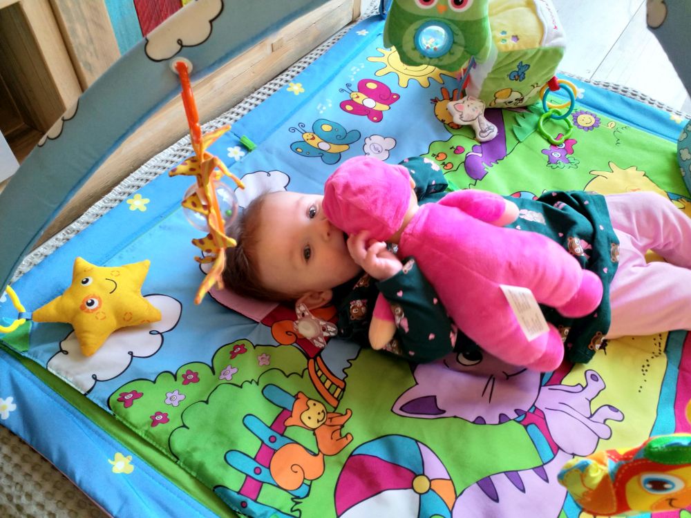 Je bent een vrolijk meisje, je lacht en kijkt vrolijk om je heen. In de avond heb je geen huiluurtje meer. Wel ben je moe en slaap je al rond 18:30. Om 23:00 krijg je nog een fles. Meestal word je dan rond 6/7 uur weer wakker. Dat doe je heel goed! Soms slaap je ook wel een nachtje tussen papa en mama. Dat vinden wij alle drie beregezellig. Je bent druk aan het oefenen met hapjes. Dit vind je nog maar niks. Je drinkt gelukkig wel goed. Je slaapt voor het eerst een nachtje bij opa en oma Mulder. Je laat je goed van jezelf horen, je brabbelt lekker. Het lijkt er op dat je ook wilt gaan zitten. Je tilt je hoofd heel mooi omhoog als je op je rug ligt. Dat snappen we heel goed. Je kunt zo alles veel beter zien. Je ontmoet ook je overgrootouders Mulder in Patrimonium. Op 16 december weeg je 5740 gram en bent 63 cm.