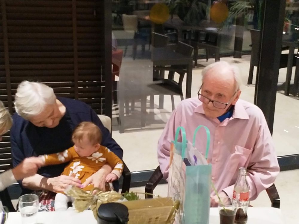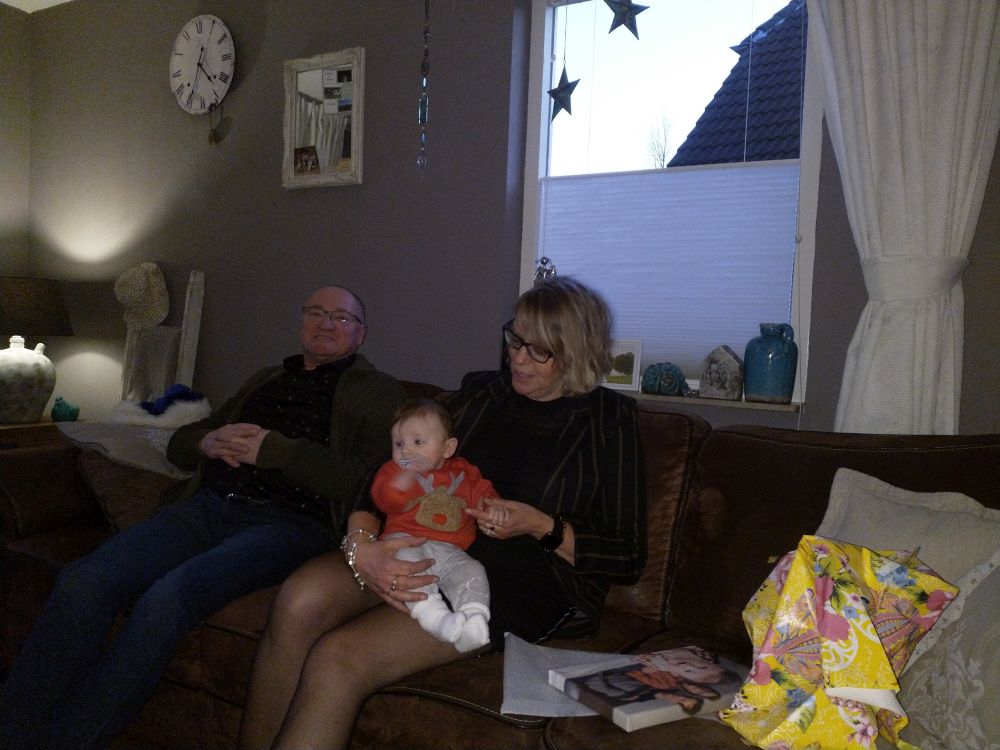 Tweede kerstdag vieren we bij opa en oma Brouwer samen met oom Jacob, tante Marian, oom Siebrand en tante Eline. Lekker gourmetten met z’n allen. Je bent natuurlijk weer kerstelijk gekleed. We horen ook dat de baby die op komst is, je …… gaat worden. Spannend!