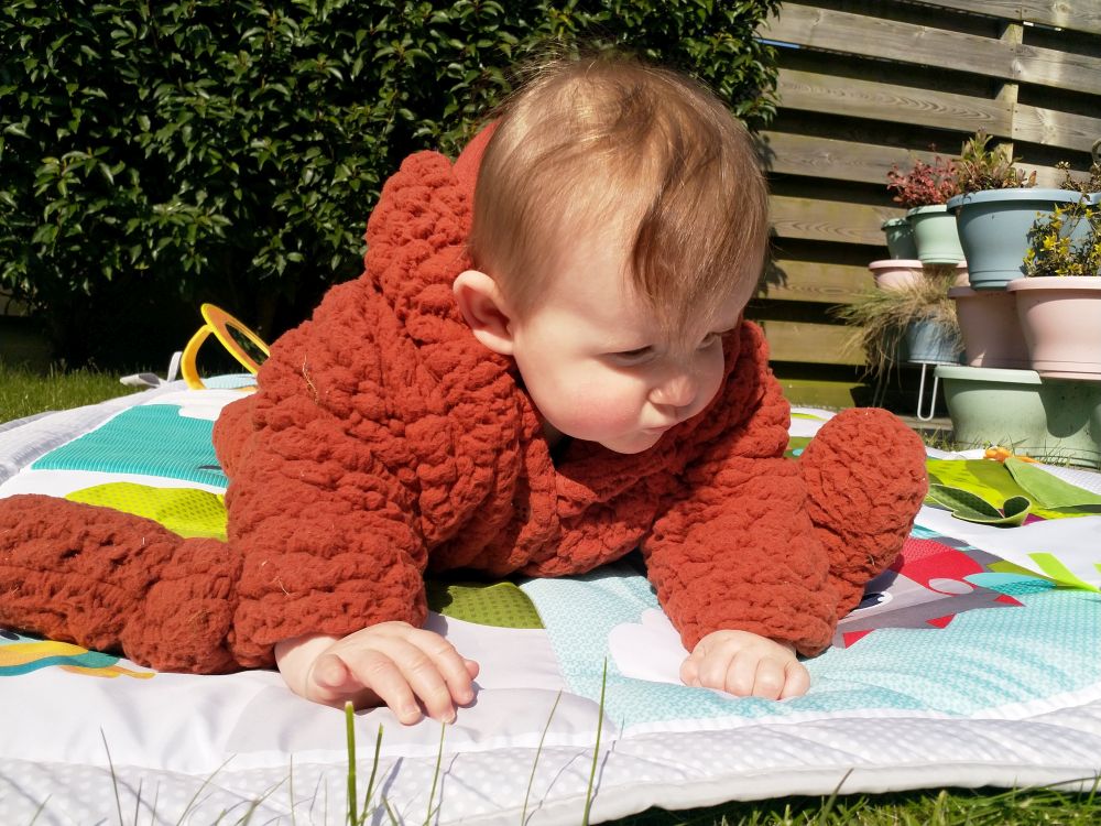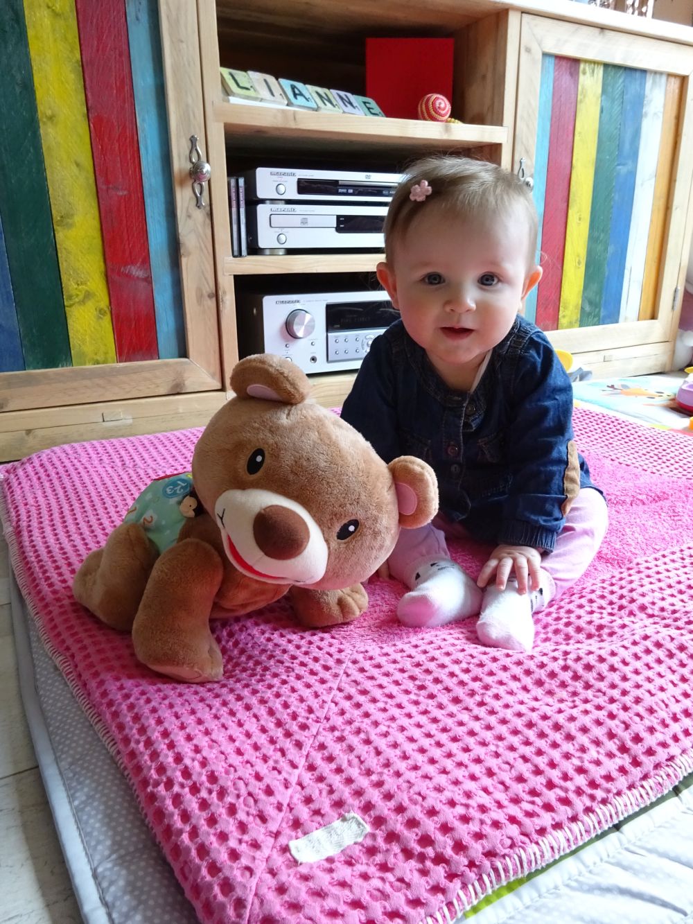 Het is een vreemde maand. Aan het begin van de maand zwem je voor de tweede keer. Deze keer zwemmen we samen met oom Marco, tante Claudia, Fabiënne en Philou. Wat hebben we een plezier met elkaar. Een week later ziet de wereld er iets anders uit. Begin maart grijpt het nieuwe coronavirus om zich heen. Ook in Nederland. Het gaat in rap tempo over de hele wereld. Op het moment leven wij ook in een soort van quarantaine. Het betekent voor jou dat je niet meer naar het kinderdagverblijf, even niet naar de opa’s en oma’s en je nichtjes gaat. Je bent thuis bij papa en/ of mama. Je gaat deze periode niet onthouden, maar zult er als je ouder wordt vast over horen. Je groeit snel. Je kan zelf al zitten. Knap hoor! Je houdt erg van eten. Je kan er geen genoeg van krijgen. Je krijgt een eigen willetje, als je het ergens niet mee eens bent ga je hard gillen. Het is mooi weer in deze maand. Je speelt lekker buiten in de tuin. Je bent een tevreden meisje. Op het moment kunnen wij niet naar het consultatiebureau. Deze zijn ook beperkt ivm het coronavirus. We weten niet precies hoe zwaar en hoe lang je bent. Thuis op de weegschaal weeg je ongeveer 7 kilo.