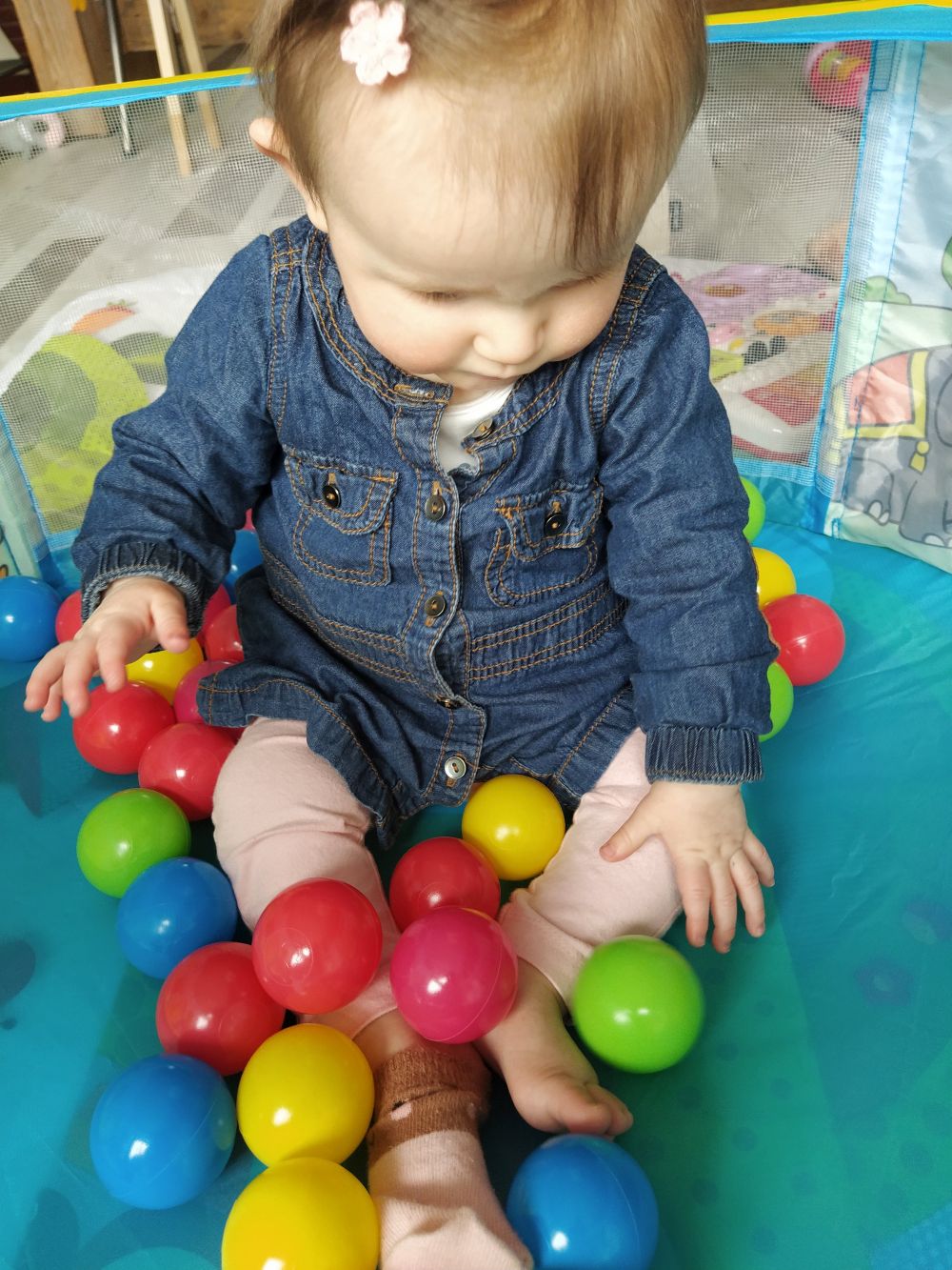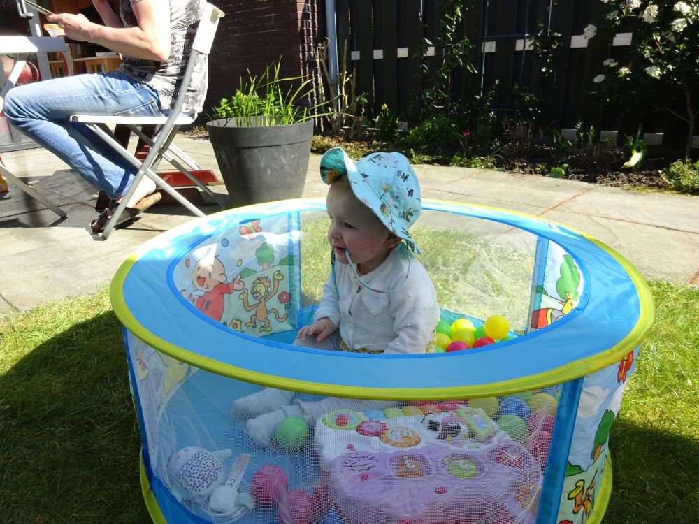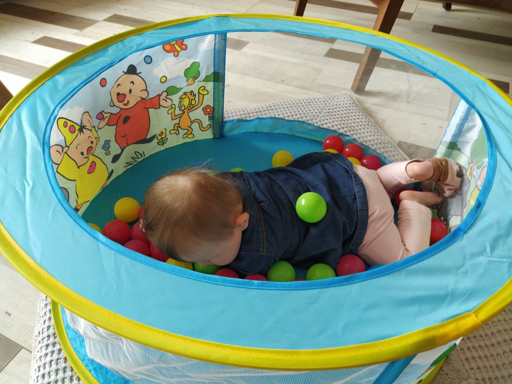 Dan staat er in een keer een pakketbezorger voor de deur. Een groot pakket van Bol.com met jouw naam erop. Papa en mama hebben niks besteld. Bij het uitpakken worden we verrast door een ballenbad. Je oom Marco, tante Claudia, Fabiënne en Philou hebben deze voor jou gekocht. Wat een mooi cadeau! Je vind het reuze interessant. Papa en mama kopen nog wat extra ballen om het feest helemaal compleet te maken. Wat een plezier heb je zowel buiten als binnen. Hopelijk binnenkort weer met je beide nichtjes erbij. Het zal wel niet lang duren of papa en mama lopen de hele dag achter ballen aan. De woonkamer begint al op een mini Monkey Town te lijken.