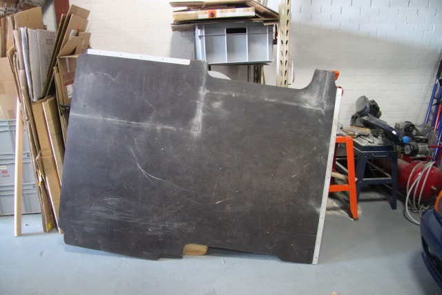 - tussenschot (20cm hoog) achter voorstoelen weg geflext, om een vlakke vloer te krijgen