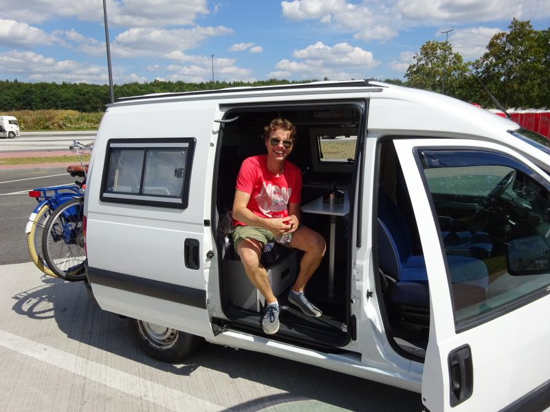 Rond half acht heeft Ricardo een ontbijtje gehaald met verse koffie en croissants bij de plaatselijke pomp. Wij zijn rond half 9 weggereden van de parkeerplaats om richting Attert te gaan. De reis ging voorspoedig en het was in verhouding tot zaterdag rustig op de weg. Helaas, helaas bleek de reservetank van de Peugeot iets minder inhoud te hebben dan Ricardo had verwacht met als gevolg dat we met een lege tank langs de weg kwamen te staan. Esther is richting het dichtstbijzijnde benzinepomp gelopen, echter werd hier niet echt geholpen. Met veel pijn en moeite kreeg ze een jerrycan diesel mee. Jammer genoeg werkte dit niet. Er zat lucht in de leidingen en de auto startte dus niet! Uiteindelijk de Franse afsleepdienst bij de auto gehad die de auto weer aan de praat kreeg gelukkig. Na het betalen van €200,- konden we onze weg weer vervolgen. Een heel duur leermomentje voor Ricardo. We kwamen 2 uur later dan verwacht rond 18:00 uur aan op Camping SUD. Hier hebben we genoten van friet!