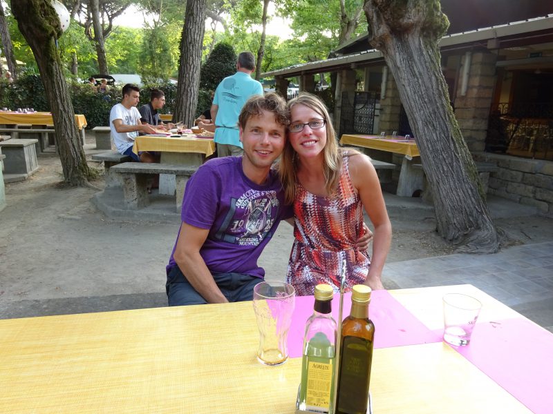 Zaterdag zijn we rond half tien vertrokken van de camperplaats. Het was bewolkt en regenachtig. het was een stuk drukker op de weg en wij hebben ook een aantal keren in de file gestaan. Rond 17:00 uur waren wij op Camping Piomboni! Na het opzetten van de tent hebben we een heerlijke pizza gegeten op de camping. ’s Avonds hebben we de omgeving een beetje verkend.