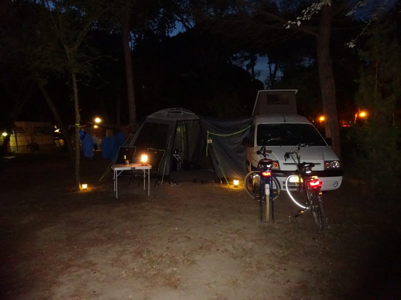 Het welkom was niet super enthousiast. De beheerder was nors en niet echt vrolijk te noemen. Wij mochten zelf een plekje uitzoeken op het grote grasveld waar een aantal caravans en campers stonden. Na soep een broodjes hebben wij een kleine wandeling gemaakt om de omgeving te verkennen, gevolgd door een relaxed avondje Rummikubben.