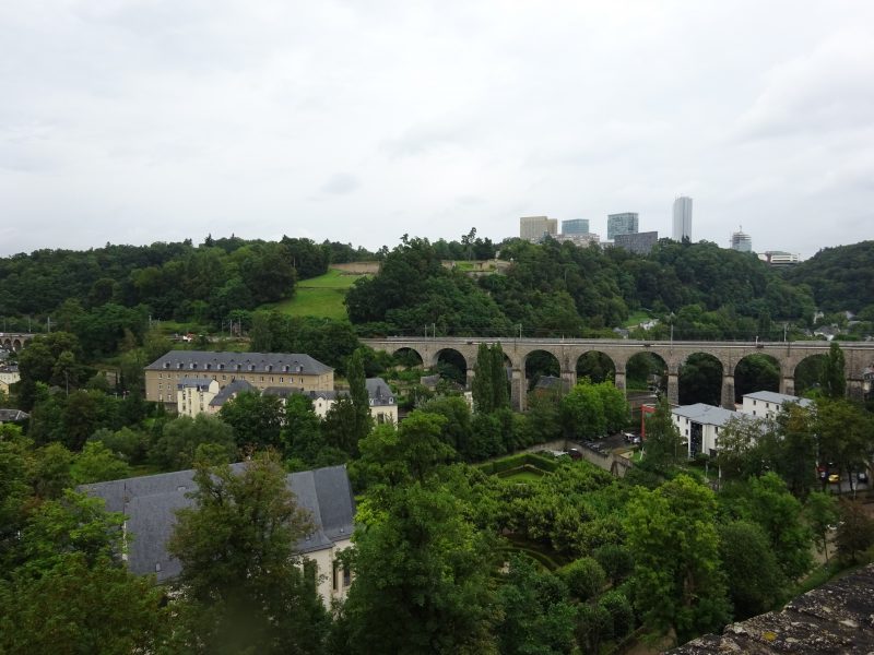 Helaas begon de dag alweer met regen. Wij hebben ontbeten in de tent. Na het loskoppelen van de camper zijn we richting Luxemburg vertrokken. Bij het VVV kregen we een hele mooie handige plattegrond om de stad te verkennen en alle bezienswaardigheden te kunnen bekijken. Luxemburg is een vrij oude stad met heel veel restanten uit het verleden. Hoge vestingsmuren, oude torens en kazematten. Oud en nieuw zijn hierin mooi verweven. Aan het eind van de dag kwam de zon door de wolken. Eindelijk!