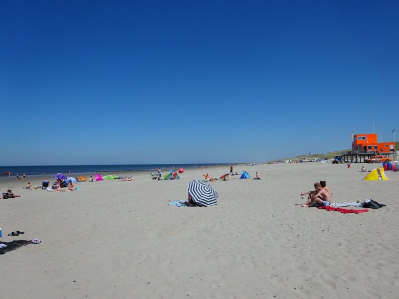 Zaterdag was het 30 graden en stond de zon al vroeg op de camper te branden. Het werd tijd om te genieten van het strand. Na het inpakken van de handdoeken richting Callantsoog gefietst om nog snel even zonnebrandcrème te kopen. Dat idee hadden meer mensen en het schap was nagenoeg leeg. Met de laatste flesjes in de tas nog even wezen shoppen en twee mooie windjacks gekocht. Daarna genoten van het strand. Op de terugweg boodschappen gedaan en heerlijk pasta gekookt bij de camper.