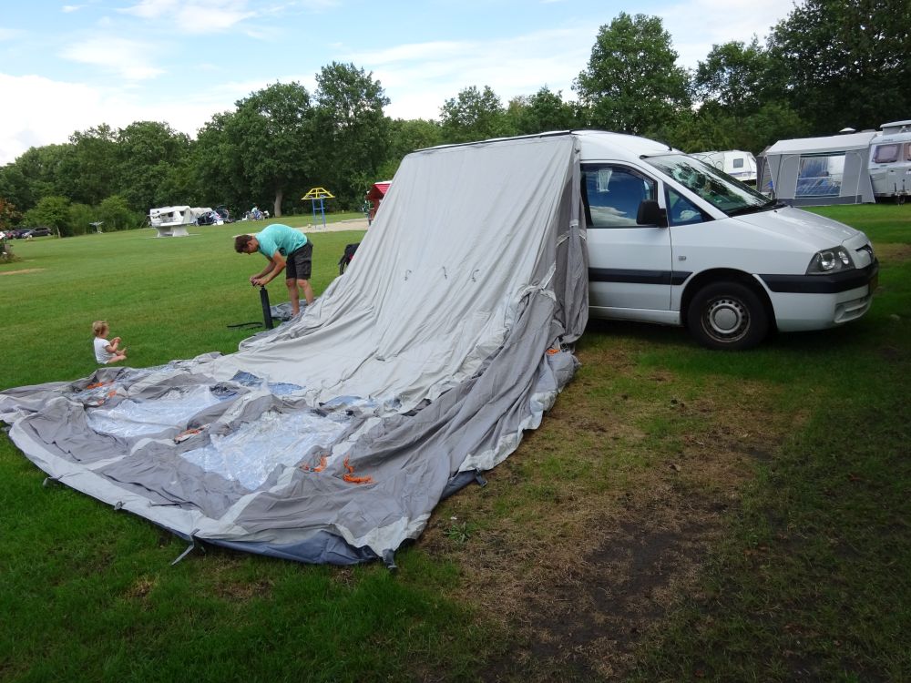 Een groot nadeel van de Nederlandse zomers… Er valt af en toe nog wel eens regen en uiteraard altijd op de avond voordat je de tent in gaat pakken. We moesten de nieuwe tent dus nat weer mee terug nemen en heeft een aantal dagen op zolder liggen drogen. Al met al hebben we weer genoten van dit “midweekje” kamperen. De nieuwe tent bevalt erg goed. We kunnen niet wachten om er weer mee op uit te trekken. De grote vraag is wanneer?