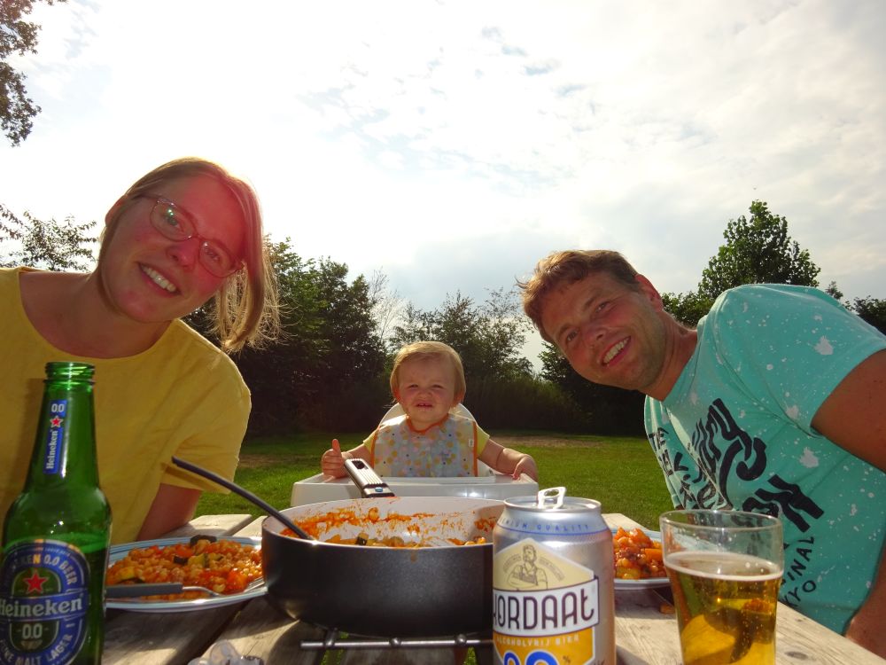 Het zou een mooie dag gaan worden met veel zon. We hebben heerlijk geslapen. Na het ontbijt en het slaapje van Lianne zijn we op de fiets gestapt voor een “lange” fietstocht (22km). Broodjes mee om te kunnen picknicken onderweg. Via het Canadameer zijn we richting Aekingerzand gefietst. Wat een schitterend gebied. Uiteraard zijn we ook de uitkijktoren opgeklommen om van het prachtige uitzicht te genieten. Hier hebben we lekker gepicknickt op het gras. Na het middagslaapje van Lianne heeft Lianne heerlijk in de speeltuin mat zand en water gespeeld, daarna nog even lekker afgespoeld in de afwasteil. De BBQ ging weer aan en hebben heerlijk gegeten.