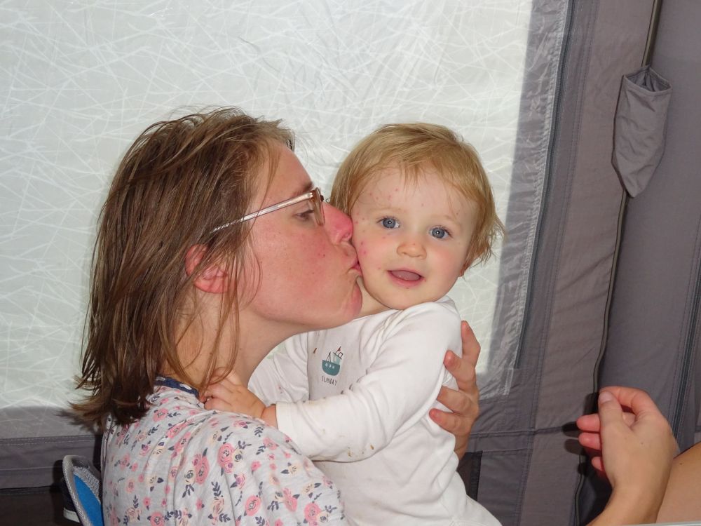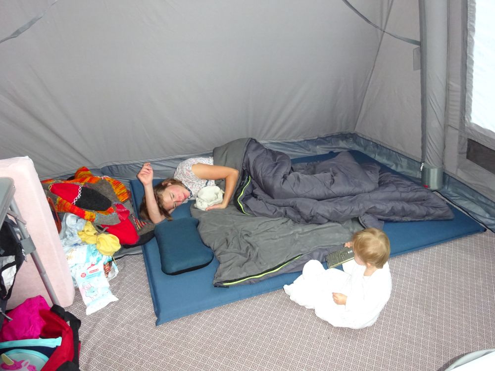 Na een prachtige dag gisteren begon de dag met regen. De tent bleek waterdicht. Marco, Claudia, Fabiënne en Philou komen gezellig langs en we vermaken ons goed in de indoorspeelplaats. Hier zijn we de hele ochtend zoet geweest. Het werd in de loop van de dag weer beter weer en hebben nog lang buiten kunnen zitten voor de tent.