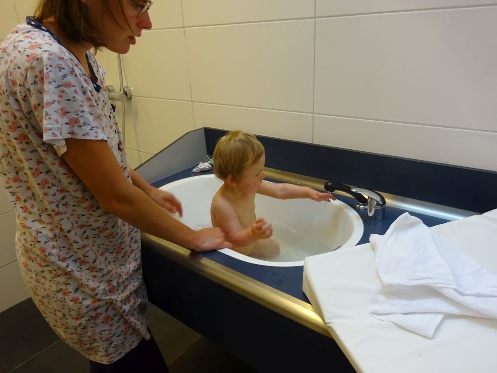 Eindelijk zomervakantie! Voordat we op onze kampeertrip konden beginnen moest Lianne deze ochtend eerst nog voor een echo van de nieren naar het UMCG. Alles bleek goed. Het niertje dat niet functioneert is bijna helemaal verschrompeld en kan in de toekomst dus geen problemen meer gaan opleveren. Ondertussen ben ik richting Hoogeveen gereden om onze nieuwe bustent op te halen. Op de terugweg Esther en Lianne weer opgepikt bij het UMCG om thuis de laatste spulletjes in te pakken. Rond kwart voor drie zijn we in de minicamper gestapt en richting Elsloo gereden. Een reis van maar liefst 32 km! Om 15:15 stonden we bij de receptie van Camping d’Elf Ieken. We werden hartelijk ontvangen met een kop koffie en thee en mochten op het veld zelf een plaats uitzoeken. Een leuke plek bij de speeltuin en dicht bij het toiletgebouw. Het sanitair ziet er hier echt prachtig en schoon uit. Er is zelfs een speciale gezinsbadkamer die van alle gemakken is voorzien. De nieuwe bustent is qua formaat iets groter dan onze oude tent. Het puzzelen kon beginnen. Al snel bleek het redelijk eenvoudig en stond de tent vrij vlot naast de camper. Nog niet helemaal perfect, maar bij de volgende trip weten we wat we nu anders moeten doen. Snel een kopje koffie en de voorbereidingen treffen voor het avondeten… Pasta. Na het eten zijn we naar de buitenspeeltuin gelopen Lianne keek haar ogen uit en vond vooral het luchtkussen en het samen schommelen geweldig. Uiteraard hebben we ook nog even bij de geitjes en de schaapjes gekeken. Lianne begon een beetje moe te worden. Het was eerst weer even wennen om achterin de minicamper te liggen. Uiteindelijk viel ze lekker in slaap. Wij hebben lekker nog even voor de tent gezeten beide met een spannend boek.