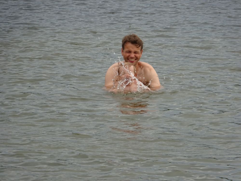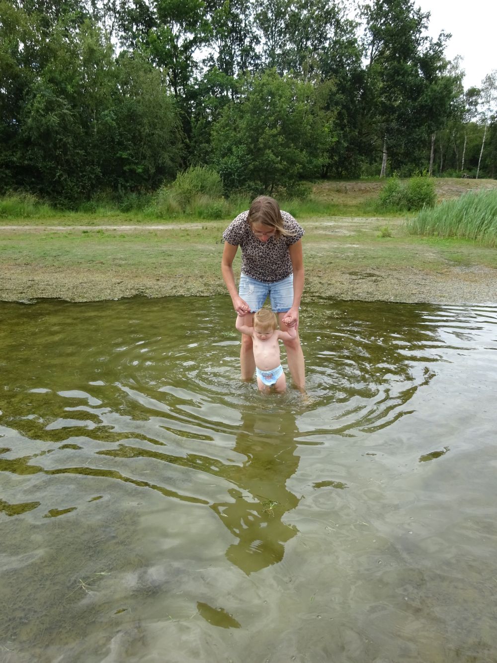 De tweede nacht verliep beter dan de eerste nacht. Lianne werd ook iets later wakker dan normaal. We hebben dus een soort van uitgeslapen tot half 8. De voorspellingen waren gunstig. Na een fris bad en een douche in de speciale gezinsbadkamer zijn we na het slaap je van Lianne richting Appelscha gefietst. Er moesten nog wat boodschappen gedaan worden. We hebben pannenkoeken gegeten bij De Appelsche Hof. Lianne kreeg bij haar pannenkoek nog een mooie roze knuffelslang. Ze heeft haar pannenkoek bijna helemaal opgegeten. ’s Middags heeft Lianne haar slaap gedaan en zijn we naar het Canadameer gefietst. Een schitterende natuurplas midden in de bossen. Het was nog lekker weer dus hebben Lianne en ik een “duik” genomen in het water. Een echt waterratje. Het water was mooi helder. Je kon de bodem goed zien. Ik dacht op een steen te gaan staan, echter bleek dit niet het geval. Het voelde aan als drilpudding. Een kwal in zoet water? Gelukkig weet Google alles. De drilpudding bleken dus waterzakmosdiertjes te zijn.