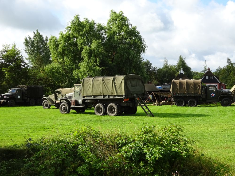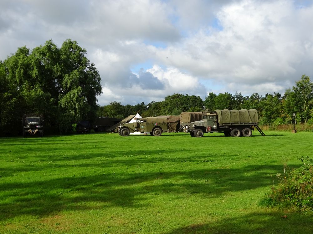 Het derde weekendje alweer voor dit kampeerseizoen. De weersvoorspellingen waren, om het nog positief uit te drukken, niet zo best. Vol volle moed toch alles weer ingepakt. Je bent een kampeerder of je bent geen kampeerder. Rond 13:00 uur was de minicamper weer ingepakt en kon de verre reis naar Kollumerzwaag beginnen. Onderweg toch nog even een noodstop gemaakt bij de AH om wat vergeten zaken te kopen. De drukke dagen en het ochtendritme van Lianne hakken er soms wel een beetje in. Voordeel is wel dat het het meeste in de camper kan blijven liggen en je ze volgende keer ook niet meer vergeet. We reden om 2 uur Minicamping De Dobbe op. Een mooie camping met een leuke speeltuin en hertenkamp. Het sanitair is net en schoon. Voor de camping stond een legerkamp. Prachtige voertuigen uit de Tweede Wereldoorlog met daarbij legertenten en zelfs zandzakken. Een mooi tafereel om te zien. We werden begroet door de campingbeheerster en mochten een leuk plekje uitzoeken. Het zonnetje was ondertussen doorgebroken. Snel de tent opgezet en daarna de speeltuin ontdekken met Lianne.