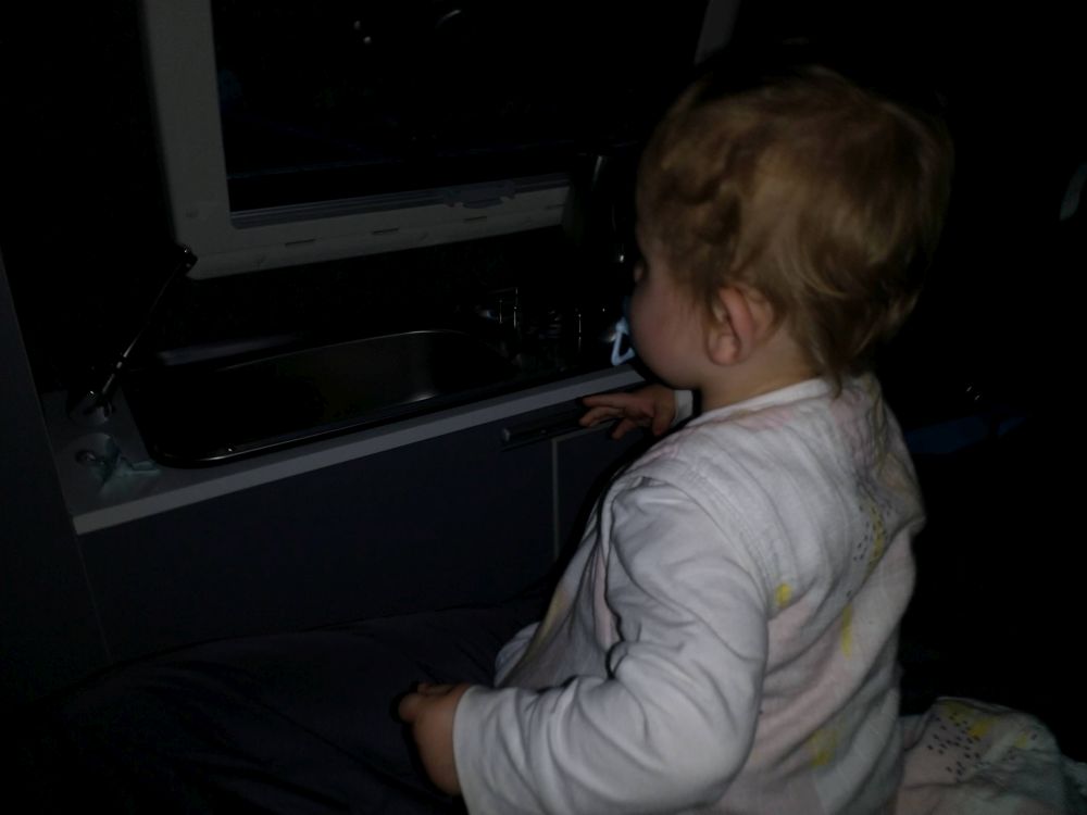 Ondanks de harde regen viel Lianne goed in slaap en hebben wij onze boeken gepakt en zijn rustig in de tent gaan lezen. Af en toe konden we elkaar niet verstaan, zoveel regen viel er uit de lucht. Tijdens een droge periode snel de tanden gepoetst. Helaas lukte het niet om het in de tent helemaal droog te houden. De ingang had even opengestaan met als gevolg dat het tapijt daar doorweekt was. We hebben ondanks de vele regen toch heerlijk geslapen.