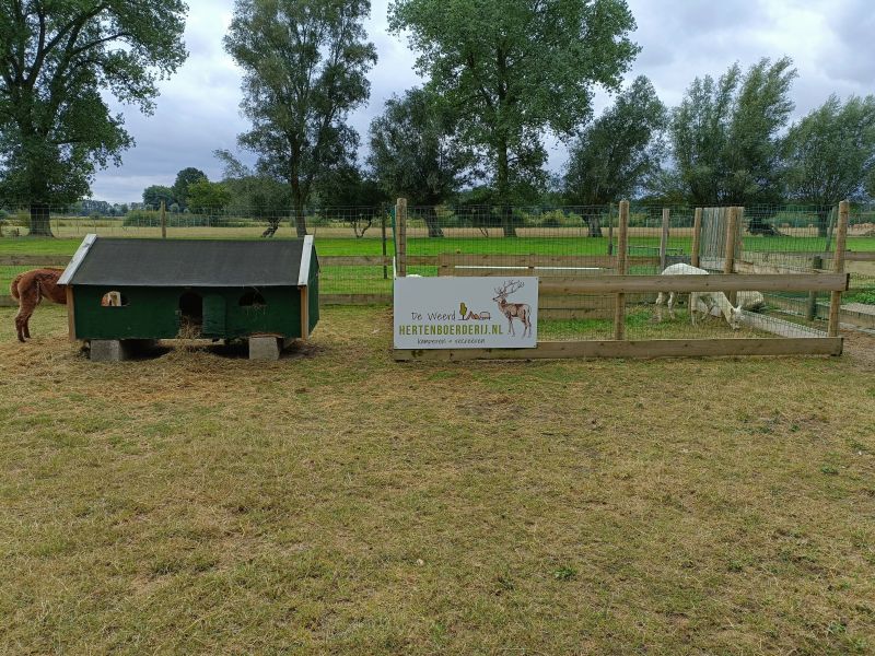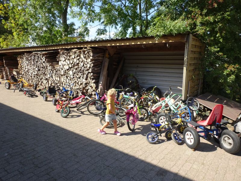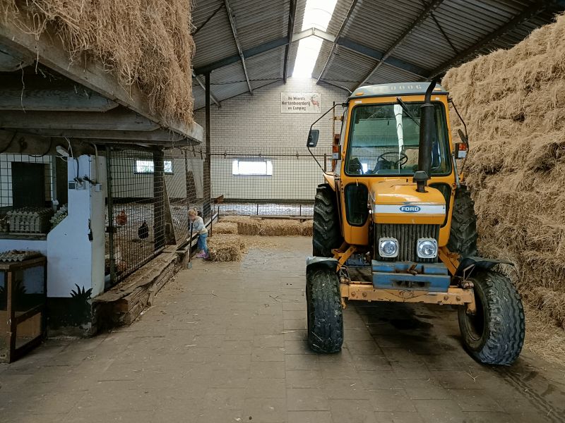 Nu was het tijd om af te drogen en richting Nijbroek te rijden. Een ritje van bijna 12 km! Binnen een kwartier stonden we bij de Hertenboerderij op de stoep. We werden vriendelijk ontvangen met een kopje koffie en ranja. Hier hangt gelijk een andere sfeer, naast de camping is de boerderij nog vol in bedrijf. Heerlijk al die boerderijgeurtjes. Onze gehuurde toercaravan stond op het achterste veldje. Zo zie je ook gelijk de hele camping. Klein nadeel dat de afstand tot de toiletten en douches iets groter is. Het veld was gelukkig niet leeg en er stonden nog twee caravans waar ook kinderen verbleven. Op het veld veel vertier voor de kids. Naast een trampoline waren er diverse huisjes, schommels, skelters, fietsen e.d. Op een af andere manier vond Lianne de trampoline op het andere veld leuker.