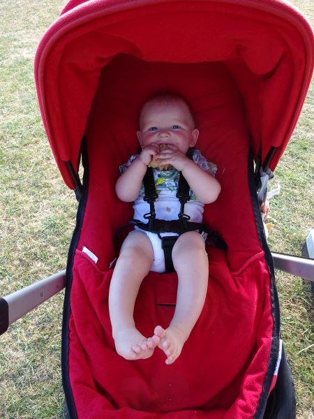 In de middag zijn we naar vliegveld Teuge gereden. Hier hebben we vliegtuigjes zien opstijgen en waren ze zelfs aan het parachute springen. Een mooi gezicht om te zien. Uiteraard nog even op het springkussen gespeeld en op de wipkip gezeten. Naud vond de vliegtuigen ook reuze interessant.