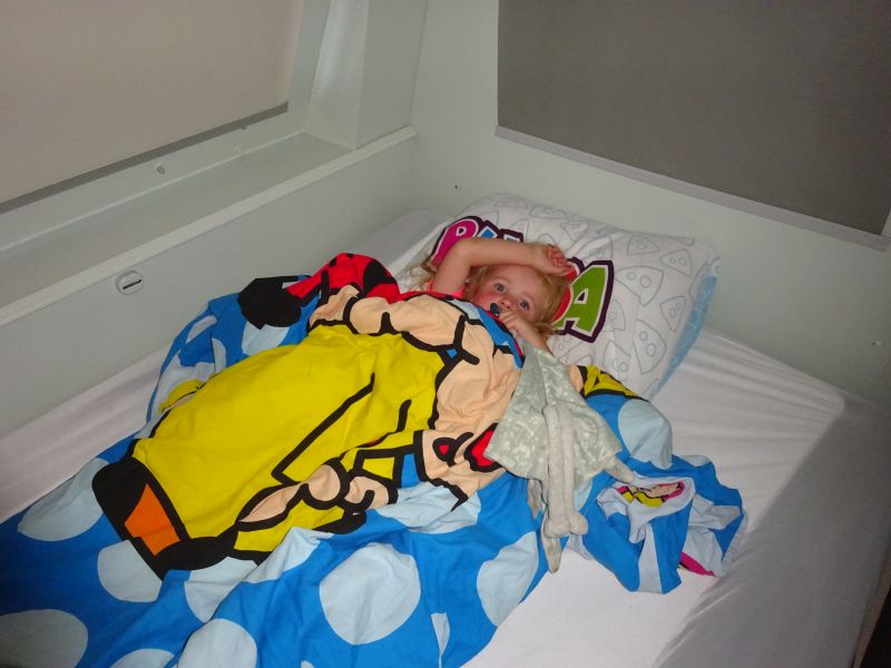 Bij terugkomst moest er eerste even gekeken worden of alle diertjes er nog waren. Dit bleek het geval, dus we konden rustig een hapje eten. Na het eten werd het langzaam weer tijd om op bed te gaan. Ditmaal eerst met een tijdschrift door de caravan heen om de muggen te doden.