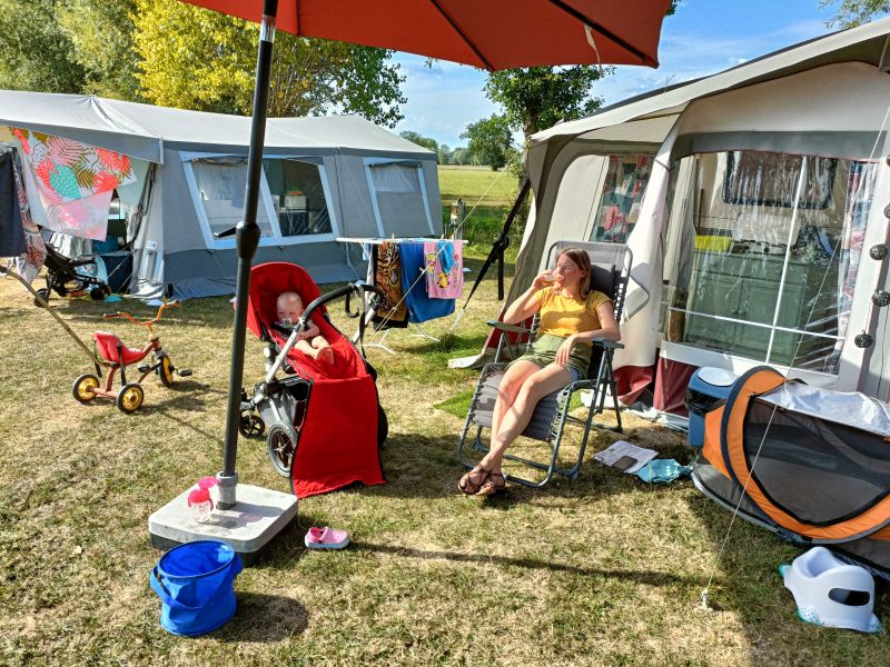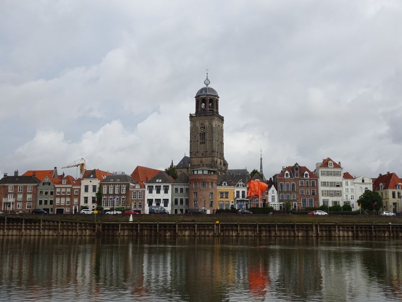 De nacht bracht veel regen en onweer. Voor de natuur zeker niet verkeerd gezien de droogte, die ook goed te zien was op de kampeerveldjes. Gelukkig was het de volgende ochtend weer droog. In de loop van de ochtend stond een bezoek aan Deventer op het programma. Parkeren op de P+R en dan met de pont over. Dat was een leuke ervaring. Het water van de IJsel stond extreem laag. Het was wel even een de buggy en kinderwagen weer hoog op de wal te krijgen.