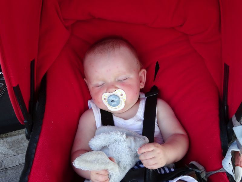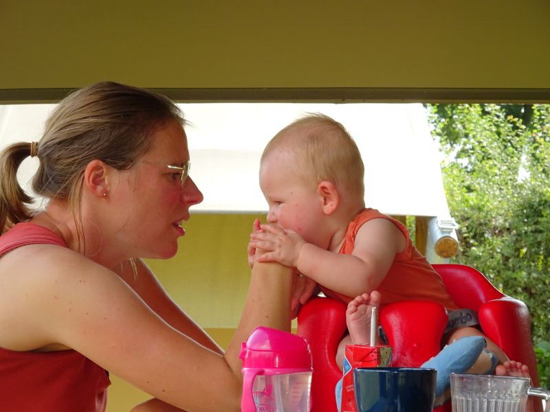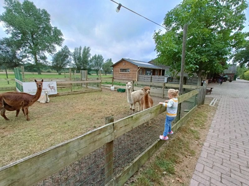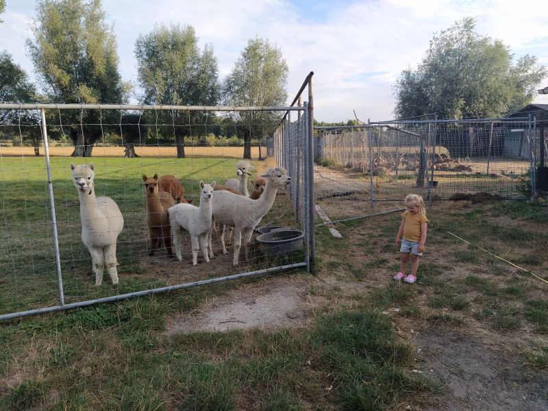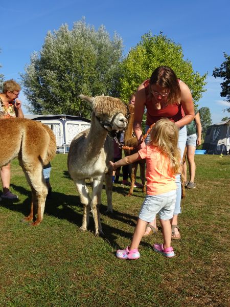 De nacht was wat minder. De bed-indeling was gewijzigd. Papa lag in het kleine bed en de rest lag in het grote bed. De muggen hielden iedereen uit z’n slaap. Naud z’n hoofd leek wel een speldenkussen toen we wakker werden. Het mocht de pret niet drukken en na het ontbijt hebben we de boer geholpen met het voeren van de dieren. Daarna mocht er zelfs even met de alpaca’s gewandeld worden over de camping. Mama en Lianne kwamen ze ook even op het veldje tonen. Echter superleuk!