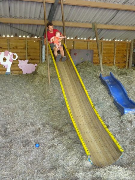 Een grote verrassing vandaag opa Kees en oma Corrie kwamen langs om 2 nachtjes in de safaritent te overnachten. Rond het middaguur kwamen ze aan. Het weer begon iets slechter te worden, maar het bleef gelukkig droog. Lianne heeft opa de dieren laten zien en er werd een vriendschap gesloten met het buurmeisje van de safaritent. Wij zijn vandaag de hele dag op de camping gebleven. Lekker glijden in de hooizolder en op het veldje spelen.