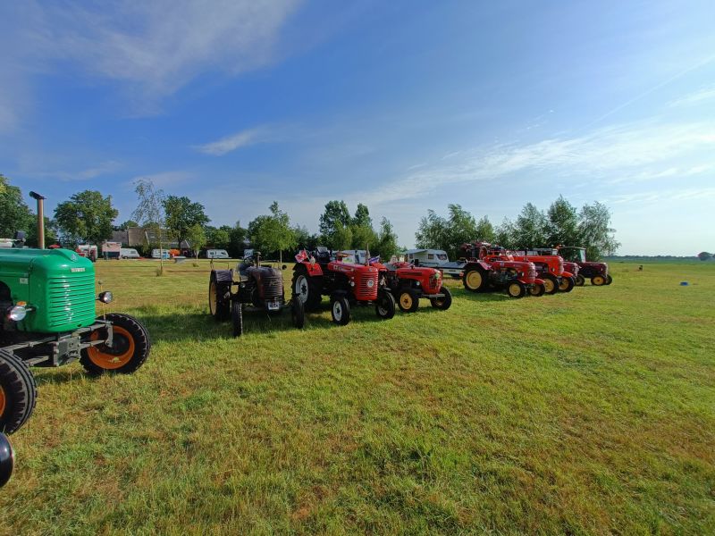Iets later in het seizoen dan gewoonlijk, maar we konden weer kamperen wel op een bekende camping met nieuwe eigenaren. Overdag moesten wij beide nog aan het werk en de kids waren op de opvang. Esther had alles de avond ervoor al ingepakt. Bij thuiskomst alles achter in de auto gedaan, de fietsdrager op de trekhaak en de fietsen erop. De “lange” reis richting Elsloo kon beginnen. Rond 17:30 kwamen we aan op de camping. De Elf Ieken stond zo goed als vol! Er bleek een grote fanclub te zijn neergestreken met allemaal klassiek Steyr trekkers. Naud en Lianne vielen met hun neus in de boter. Het weiland waar normaal gesproken de koeien liepen was nu het toneel van enkele tientallen Steyr trekkers. Bij de ingang van de camping stonden twee gloednieuwe modellen. Al met al een zeer warm welkom.