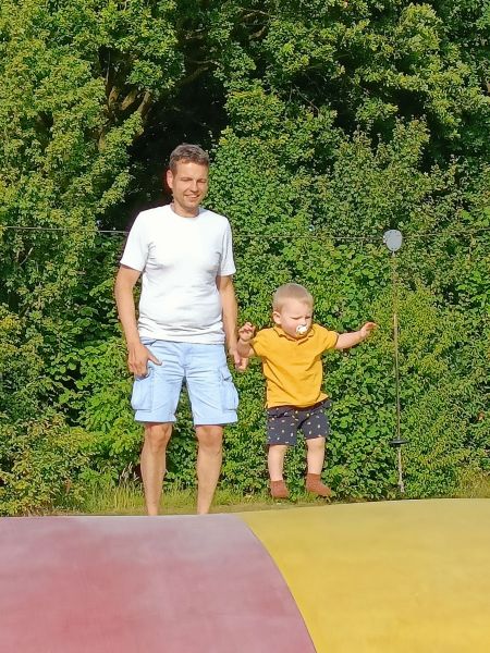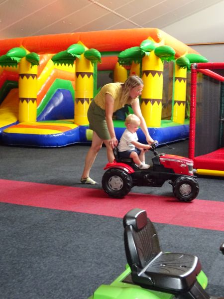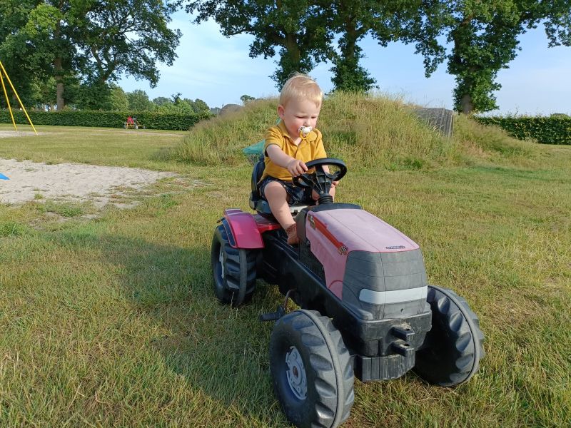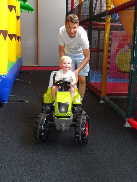 Snel de sleutel opgehaald bij Jantien en de auto uitgepakt. Na het uitpakken snel een hapje eten en de speeltuin verkennen met de kids. Naud was al snel fan van de kleinere traptrekkers. Helaas nog iets te klein om zelf te kunnen trappen. Lianne wilde samen met papa nog even de trekkers bekijken op het veld. Bij het toiletgebouw was nog een band aan het spelen me zeer goede muziek. Naud heeft nog even gedanst en trok de nodige aandacht van het publiek.