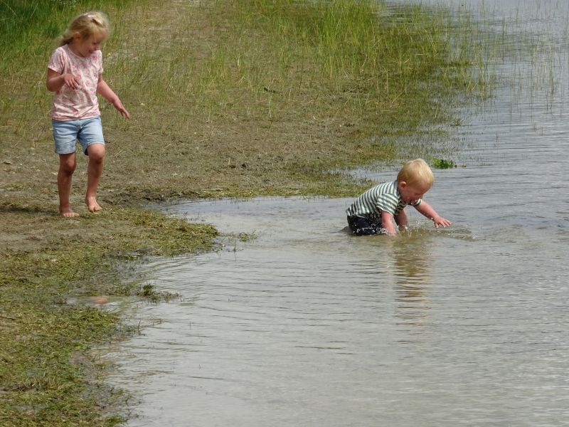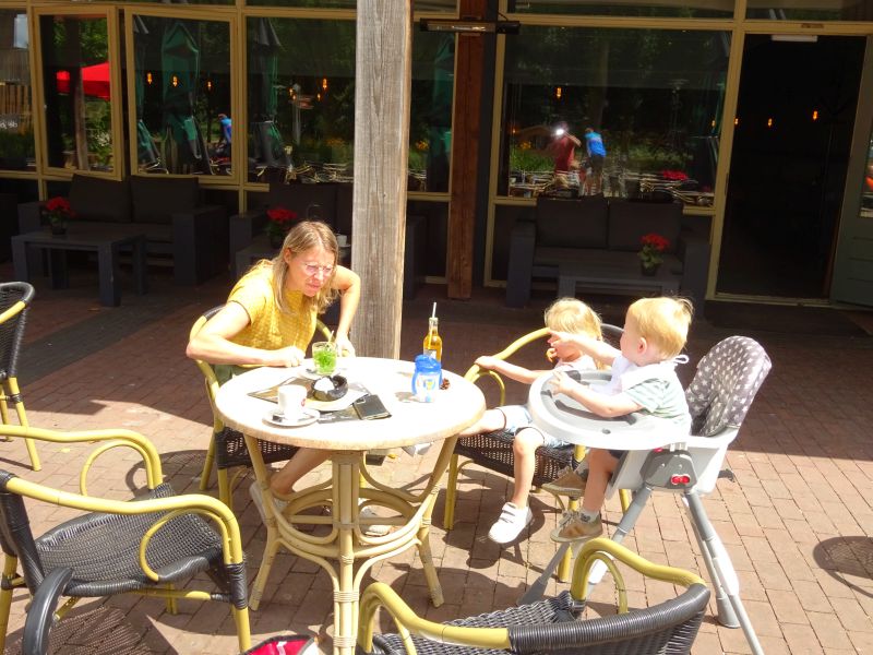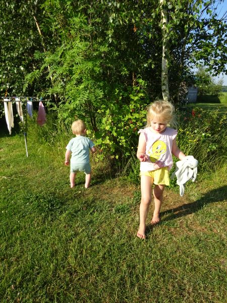 Zondag het begin van een erg warme dag. De kids hadden de rode bessen ontdekt in de bosjes. Deze waren goed te eten en ze konden er dus ook niet van afblijven. Op de fiets gestapt richting Appelscha. Daar hebben we eerst even over de markt gelopen en wat lekkere dingen gekocht toen door naar de supermarkt. In de middag de verkoeling opgezocht van de schuur. Hier hebben we lekker gespeeld met de trekkers. In de avond nog even naar de buitenspeeltuin en de geitjes brood gegeven. De dag was alweer voorbij. De tijd vliegt als je het leuk hebt.